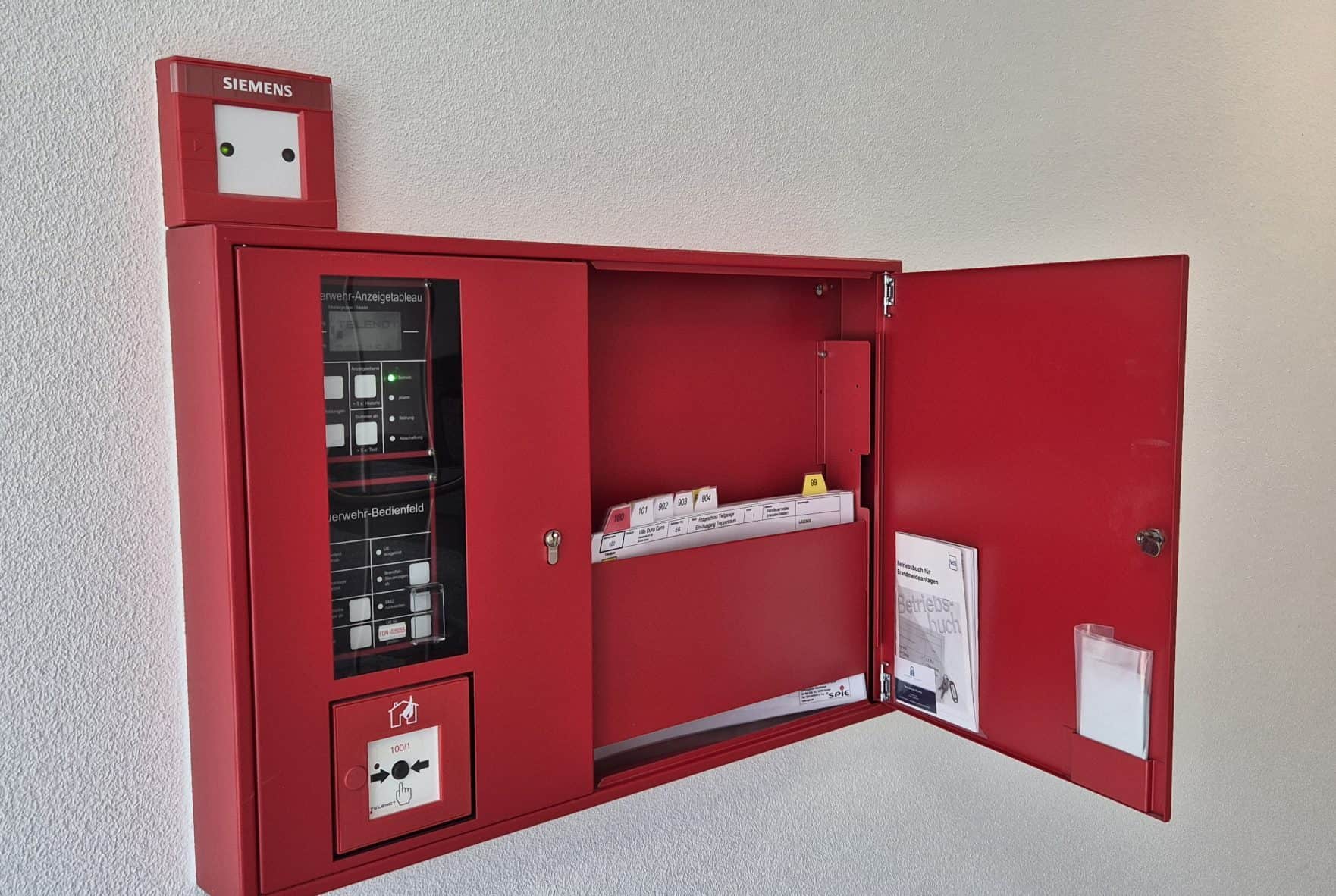 Feuerwehrlaufkarten- und Melderzentrale Die Feuerwehr-Informationszentrale bündelt alle relevanten Daten der Brandmeldeanlage und ermöglicht im Emstfall eine schnelle Orientierung Hier laufen Meldungen ein, werden visualisiert und den Einsatzkräften direkt zugänglich gemacht. Laufkarten, Bedienfeld und Dokumentation sind sauber strukturiert hinterlegt – ein zentraler Bestandteil für professionelle Gebäudesicherheit und behördlich anerkannte Brandschutzlösungen.